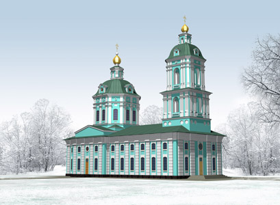 А вот архитектору А.И. Варюхину по сохранившимся фотографиям удалось восстановить облик храма в близком к первоначальному виде. Такая реконструкция позволяет не только представить в общих чертах, какой была когда-то эта церковь, но и оценить в полной мере красоту архитектуры навсегда утраченного памятника.