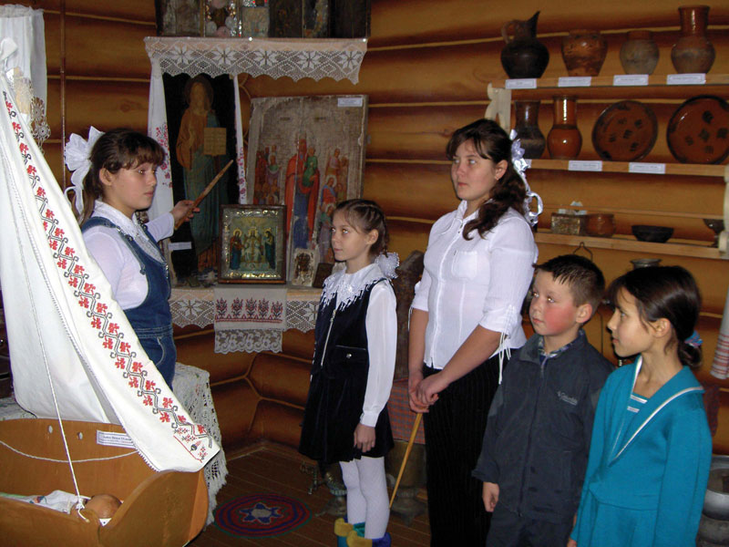 За дисциплиной следит Баба Яга. Правда, наказывать учеников ей не приходится: в коридоре стоит школьная доска, на ней во время перемены можно писать, рисовать, играть в «крестики-нолики» и прочие забавы. Кот ученый детишкам вопросы-викторины загадывает, в народный музей зазывает на русские потешки да бряндинские посиделки. Чего только в музее нет! Утюги да прялки - не диковинка: старинной утвари домашней полно. Главное, многие вещи выполнены руками ребят в народных традициях: полотенца вышитые, салфетки, одеяло лоскутное. Есть и раритеты: найденный в овраге бивень мамонта, старинные медные монеты (вырытый клад весил два пуда), иконы старого письма, предположительно, конца XVIII века.