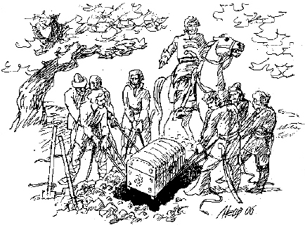 От него заметны следы большого вала по направлению к Сенгилею. В прежние времена, как рассказывают старожилы, там часто находили старое оружие и утварь: бердыши, кольчуги, стрелы, луки, подковы, посуду и т. д. Все это находили при поисках заговорного клада, положенного там по преданию Кудеяром.