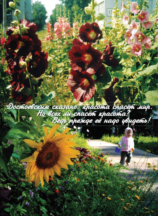 Пока же многие люди, придавленные жизненными тяготами, к цветам равнодушны. Другие «вступают с ними в отношения» с чисто потребительскими целями. Третьи, наловчившись красть всё, что «плохо лежит», воруют и цветы. Четвёртые, агрессивные по натуре, не дают нормально жить ни людям, ни цветам. Если для людей формально существуют какие-то законы, то за порчу и гибель цветов никто не несёт ответственности. В такой обстановке спасает цветник только одно: срочная замена уничтоженных или вытоптанных цветочных растений другими кустами, которые всегда должны быть в «запасниках». Взамен одного сорванного цветка надо посадить десять новых. Так создаётся иллюзия, что цветы в нашем цветнике не рвут. Если же прекратить ежедневную посадку, то уже вскоре цветник превратиться в пустошь.
