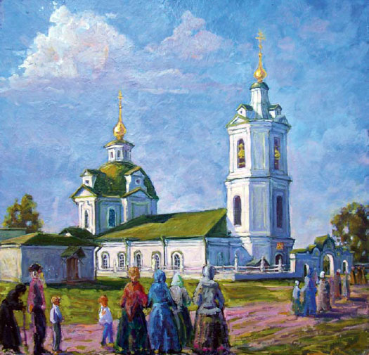 Свет льётся из окон мастерской какой-то особенный, густой, укрывает молочной поволокой еще не высохшие от краски иконы. Время здесь замерло на вздохе, на упоении присурской красотой, запечатлённой в пейзажах и исторических картинках прошлого. Александр Гордеев – не просто художник, он – художник жизни, потому что знает тайну сотворения и дарит зрителю радость познания.