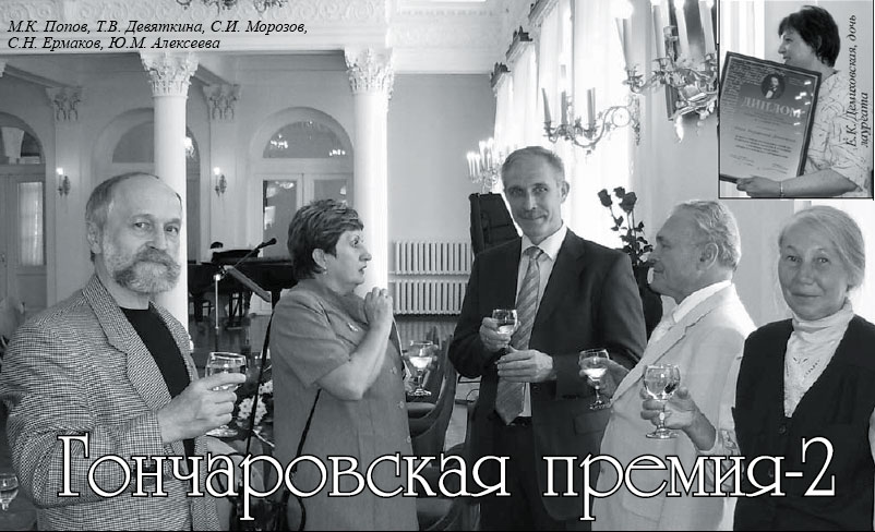 Лауреатов в этом году было трое. Архангельский писатель Михаил Попов, главный редактор журнала «Двина», получил премию за роман «Свиток». Жюри отметило чистый гончаровский язык его текста. Сам лауреат признался, что получение этой премии является для него большой честью.