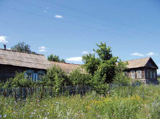 «Большое село уже спит. Не слышно ни голосов, ни гармоники, ни скрипа ворот. Двумя длинными рядами выстроились дома. Одни шатровые, пятистенные, изредка даже под железными крышами; другие – кривобокие, низенькие, крытые непричёсанной соломой».