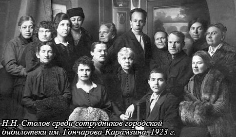 Николай Николаевич был во главе практически всех библиотечных начинаний того времени, он буквально горел идеей всеобщего просвещения. С равным энтузиазмом он организовывал выставки, лекции, беседы, диспуты, музыкальные и литературные вечера, писал каталожные карточки и книжные формуляры, клеил кармашки и ярлыки, классифицировал книги, составлял каталоги и рекомендательные картотеки для малограмотных читателей, разбирал завалы книг, очищал их от многолетней пыли и плесени. Вскоре молодой и энергичный библиотекарь стал заместителем М.Г. Медведевой. Коллеги и общественность города высоко ценили профессионализм Н.Н. Столова: трижды (1923, 1924, 1925) библиотечное сообщество избирало его делегатом библиотечных съездов Поволжья, которые проходили в Нижнем Новгороде, Ульяновске и Казани.