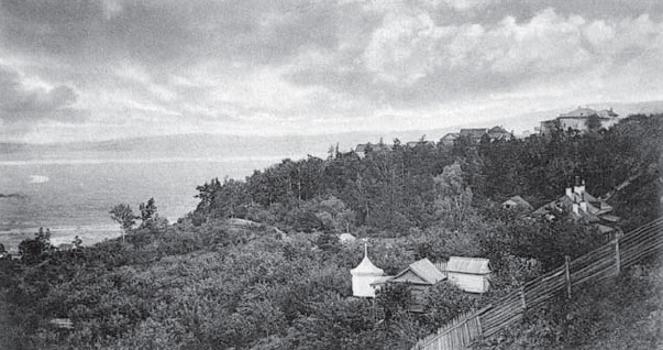 Старинный приволжский город, известный своей красотой, тишиной и захолустностью, стоит на вершине высокой горы, покрытой снизу доверху фруктовыми садами. Город, расцвеченный старыми церквами и монастырями, окутанный зелёными палисадниками, тих и живописен, почти весь деревянный, с множеством уютных бревенчатых домиков, украшенных антресолями, мезонинами и балкончиками из точёных балясин. В особенности красив самый фасад города, далеко видный с Волги: над гребнем горы, окнами к реке стоят одноэтажные домики с вышками и башенками. А перед ними вдоль крутого обрыва стелется зелёный лужок. Эта часть города исстари называется «Старым Венцом», в отличие от «Нового Венца», являющегося его продолжением. Лужок засажен чахлыми акациями, лишёнными чьего-либо ухода, а над обрывом, что горделиво высится над Волгой, стоят деревянные скамьи на врытых в землю столбиках, с покривившейся ветхой беседкой, неизвестно кем и для чего выстроенной в давние времена.