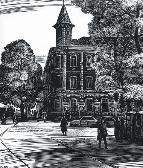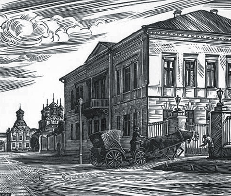 Иллюстрации – гравюры Бориса Склярука с видами Языковского парка, Симбирска и Ульяновска