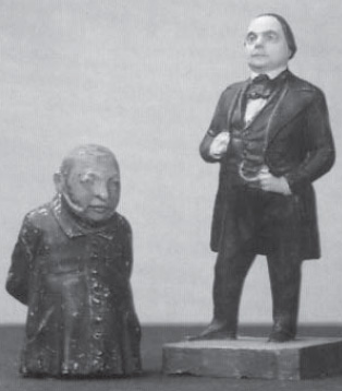 А вот создававшиеся Степановым с 1847 года шаржированные статуэтки деятелей литературы, журналистики и музыки получили широкое распространение. Наряду с дружескими шаржами (Глинка, Даргомыжский, Гончаров), Степанов создавал статуэтки обличительного характера: Булгарина и ему подобных дельцов. Небезынтересна технология изготовления статуэток. Николай Александрович лепил их из воска, формовщики его мастерской сначала отливали статуэтки из гипса, а потом изготавливали из папье-маше (иногда – из алебастра с примесью стеарина). Отлитые и очищенные статуэтки, высотой в 22 сантиметра, раскрашивались художником и сдавались для комиссионной торговли в магазин Беггрова на Невском проспекте: покупателю они обходились по два рубля за штуку.