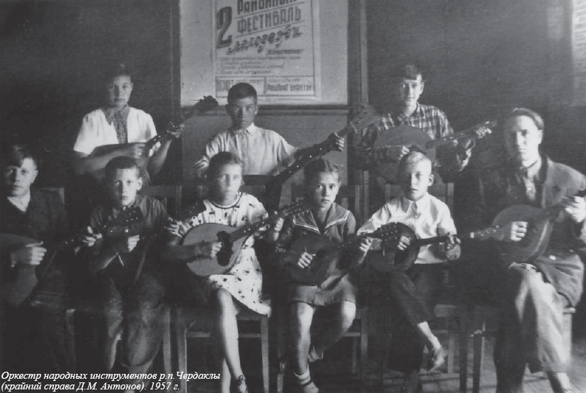 Областное управление культуры оценило старания Д.М. Антонова. Чердаклинский коллектив любителей музыки в 1954 году был награждён полным комплектом музыкальных инструментов русского народного оркестра. «Радости не было конца, – писал Дмитрий Матвеевич. – То, о чём мы давно мечтали, сбылось.