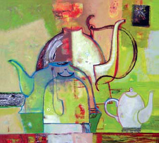 У художницы свой особый почерк, особый строй художественных средств и приёмов. К её картинам надо присмотреться, надо вжиться в них. Мир её творчества метафоричен, субъективен, эмоционален. Самые обычные вещи порой преподносятся под совершенно неожиданным углом зрения. В соединении, казалось бы, несоединимых вещей, бытовых деталей нам предлагается не пропустить существенное, попытаться уловить логическую связь времён и явлений.