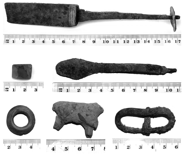 Особенно интересна находка бронзовой ромбовидной фибулы начала V в., имеющей истоки в черняховской культуре Украины. Второй комплекс аннеболгарский. Его материалы немногочисленны – это керамическая посуда, бронзовые украшения и железные изделия, свидетельствующие о присутствии здесь кочевников – болгар в VIII–IX в. Третий комплекс составляют волжско-булгарские предметы X–XIII веков».