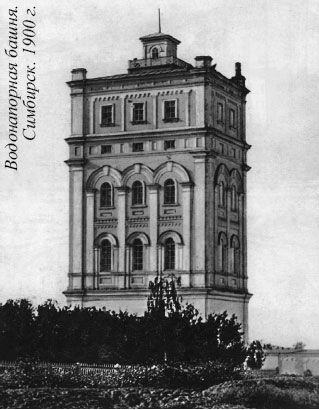 По трассе водопровода и на двухдюймовых отводах были установлены водоразборные будки и пожарные краны. У входа во Владимирский сад (ныне городской парк) на Венце была воздвигнута водонапорная башня высотой 21,5 метров и фонтан рядом с домом-памятником И.А. Гончарову (ныне краеведческий музей). Фонтан сохранился до наших дней, а вот башня, хотя и имевшая приличный архитектурный вид и хорошо вписывалась в тогдашние постройки Венца, до наших дней не сохранилась.